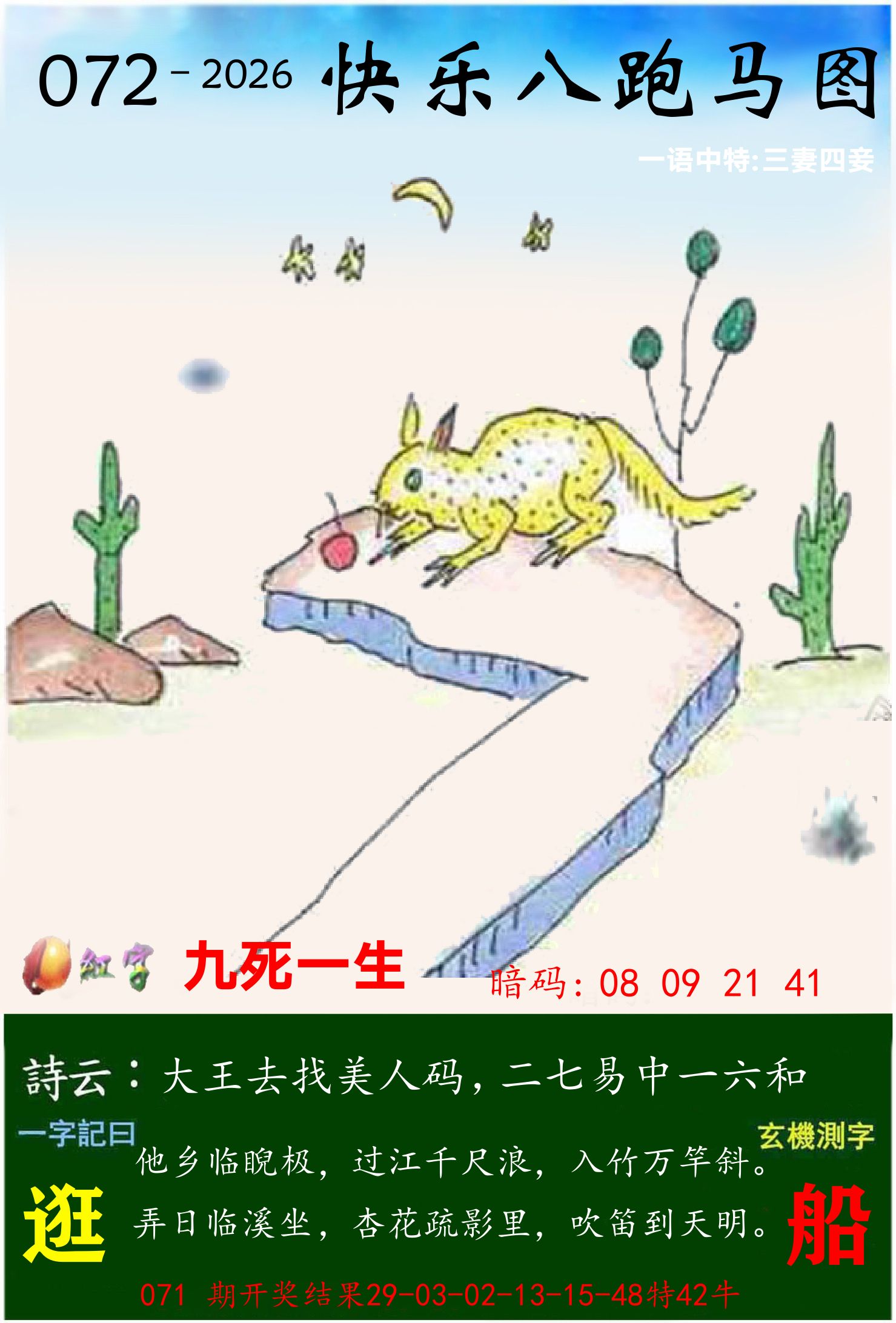 071期『澳门跑马图精解特肖』 开 42牛 准