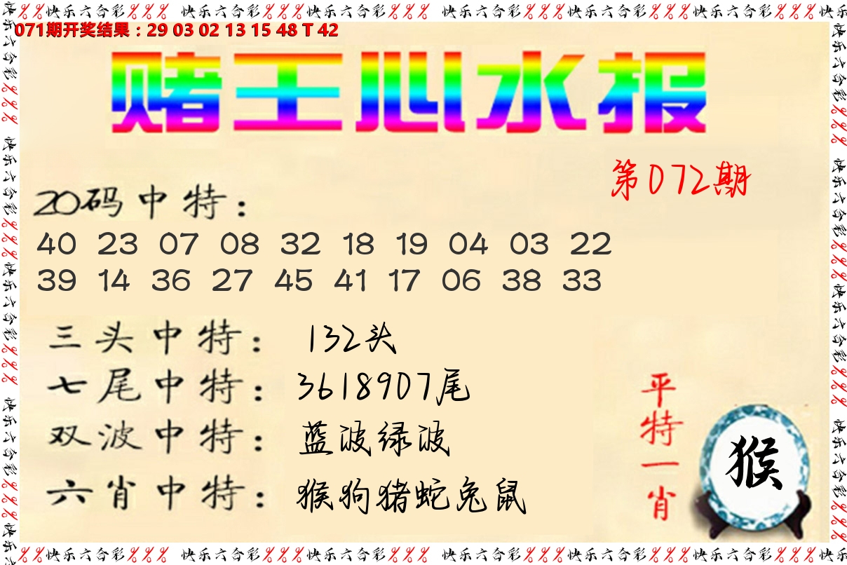 七肖:猴蛇猪马鼠狗龙 ⑦码:23 47 02 26 08 32 13 四肖:猴蛇猪马 ⑤码:23 47 02 26 08 二肖:猴蛇 ③码:23 47 02 072期: 内部赠送<猴-23>敢砸就是赢家! 记住快乐6768是您人生成功的第一步